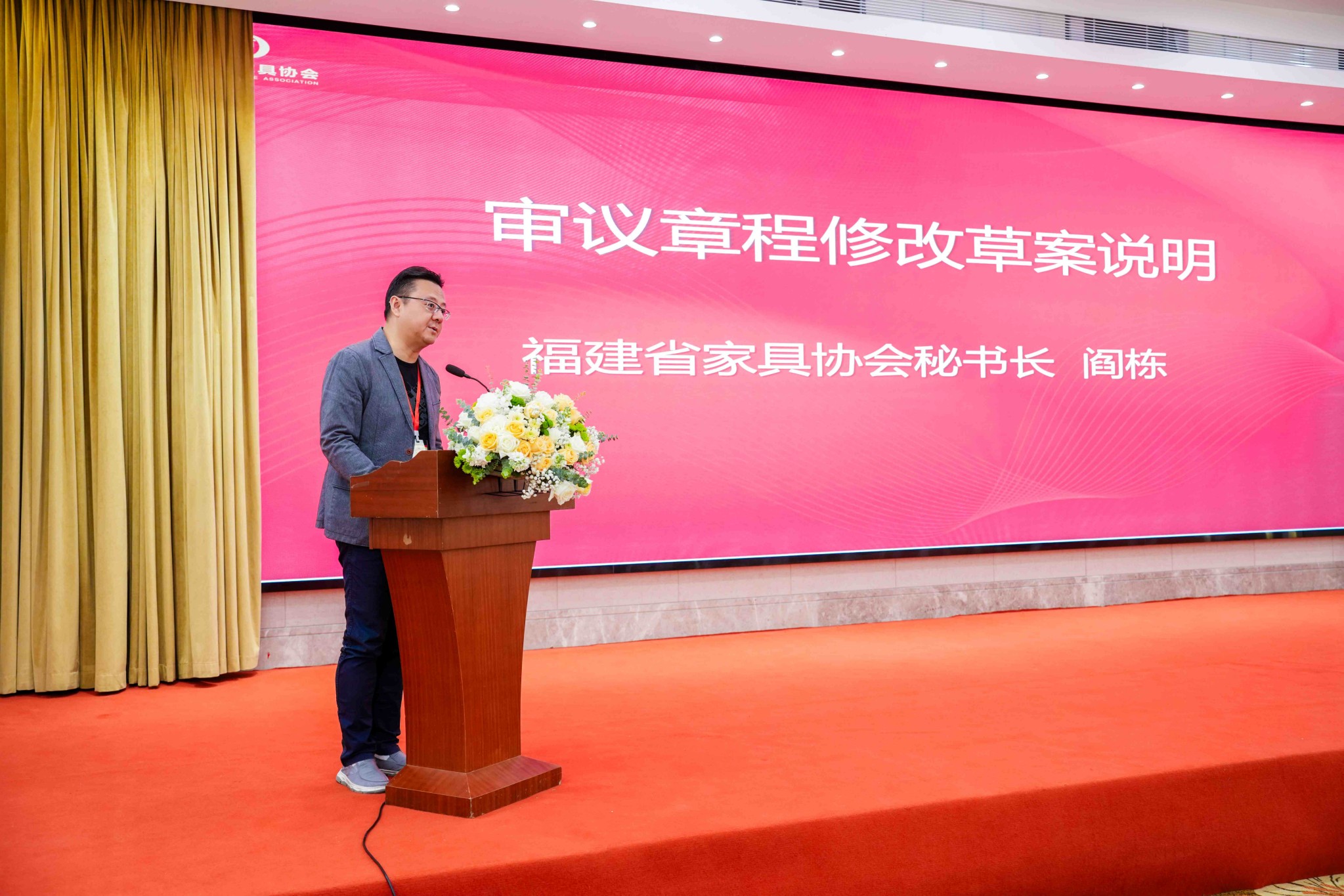 福建省家具协会第七届理事会秘书长阎栋作《福建省家具协会章程》修改草案说明。