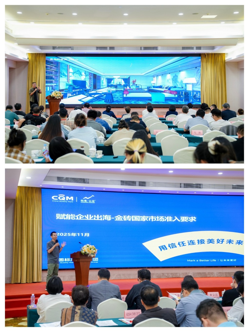 方圆标志认证集团福建有限公司运营事业部总监林润作了《赋能企业出海——金砖国家市场准入要求》的主题演讲。演讲聚焦企业出海的核心挑战——市场准入,从“法律强制门槛、商业竞争力构建、长期发展保障”三方面分析了合规出海的必要性,系统性地解读了关键目标市场(金砖国家、中东地区、东盟地区)的市场准入法规与制度,并分享了木制品新领域知识,为企业进入高潜力新兴市场提供了清晰的路径指引,助力企业提前规避合规风险,降低出海成本,实现本地化顺利落地。