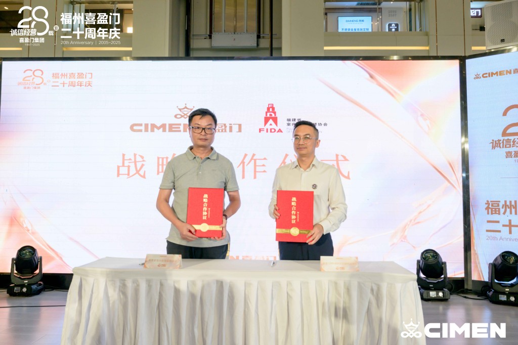 喜盈门福州总部店总经理 叶光繁先生与CIID中室学福州室内建筑师中心主任 郑杨辉先生,签署战略合作协议。