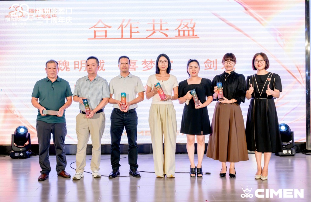 “合作共盈”旨在致敬那些以卓越远见缔结信任、以非凡匠心浇筑合作的行业标杆伙伴。这份荣誉,不仅是对过往卓越贡献的肯定,更是对“共生共荣”商业理念的最佳诠释。喜盈门福州会展店总经理 陈丽双 女士与喜盈门福州总部店总经理叶光繁 先生上台为获奖者颁奖。