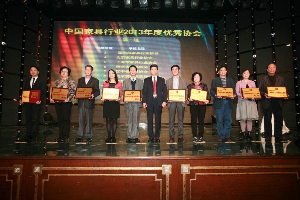 福建省家具协会荣获“优秀协会”称号。受我会推荐,我省福州喜盈门实业有限公司荣获“优秀流通企业”称号;诚丰家具(中国)有限公司、漳州市国辉工贸有限公司、福建省漳平木村林产有限公司、泉州现代家具企业有限公司、福建安溪聚丰工艺品有限公司、漳州红梅家具有限公司、鸿盛家具(福建)有限公司、福建攀达家居有限公司、 福建森源股份有限公司、福建永嘉家具有限公司、漳州市百乐家具有限公司、 好事达(福建)股份有限公司、闽侯闽兴编织品有限公司、福建闽森家具有限公司荣获“优秀生产企业”称号;仙游中国仙作红木家具产业基地荣获“优秀产业集群”称号。