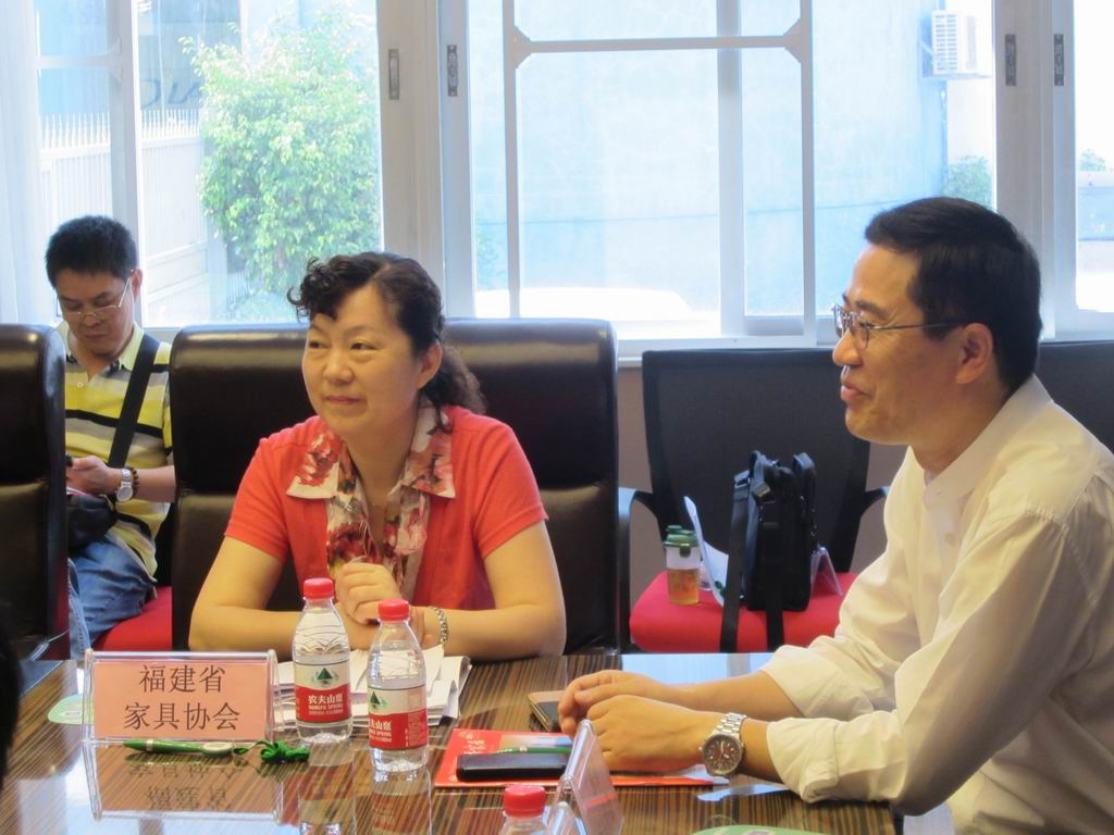 福建省家具及装饰品出口基地商会会长、福建荟源国际展览有限公司总经理阮卫星,中国对外贸易广州展览总公司副总经理陈旺辉,广东省家具协会会长王克,福建省家具协会副理事长兼秘书长沈洁梅,福建荟源国际展览有限公司副总经理陈丹锋,广州、中山、乐从、东莞、顺德、温州、胜芳等地的家具协会和浙江椅业协会、深圳市家居文化用品行业协会、广州市020F家具科技俱乐部的代表,以及来自福州喜盈门、居然之家、红星美凯龙等福州几大商场的负责人参加了交流会。与会代表达30多人,会议由陈丹锋副总经理主持。