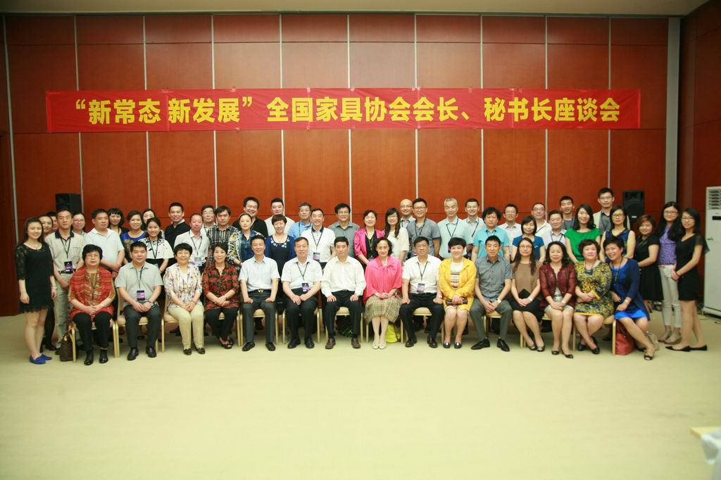 2015年5月28日,“新常态 新发展”全国家具协会会长、秘书长座谈会在天津召开。中国家具协会理事长朱长岭、副理事长刘金良、副理事长兼秘书长张冰冰及全国各个省市家具协会会长、秘书长等共计70余人出席了大会。会议由中国家具协会副理事长兼秘书长张冰冰主持。福建省家具协会副理事长兼秘书长沈洁梅参加了会议。