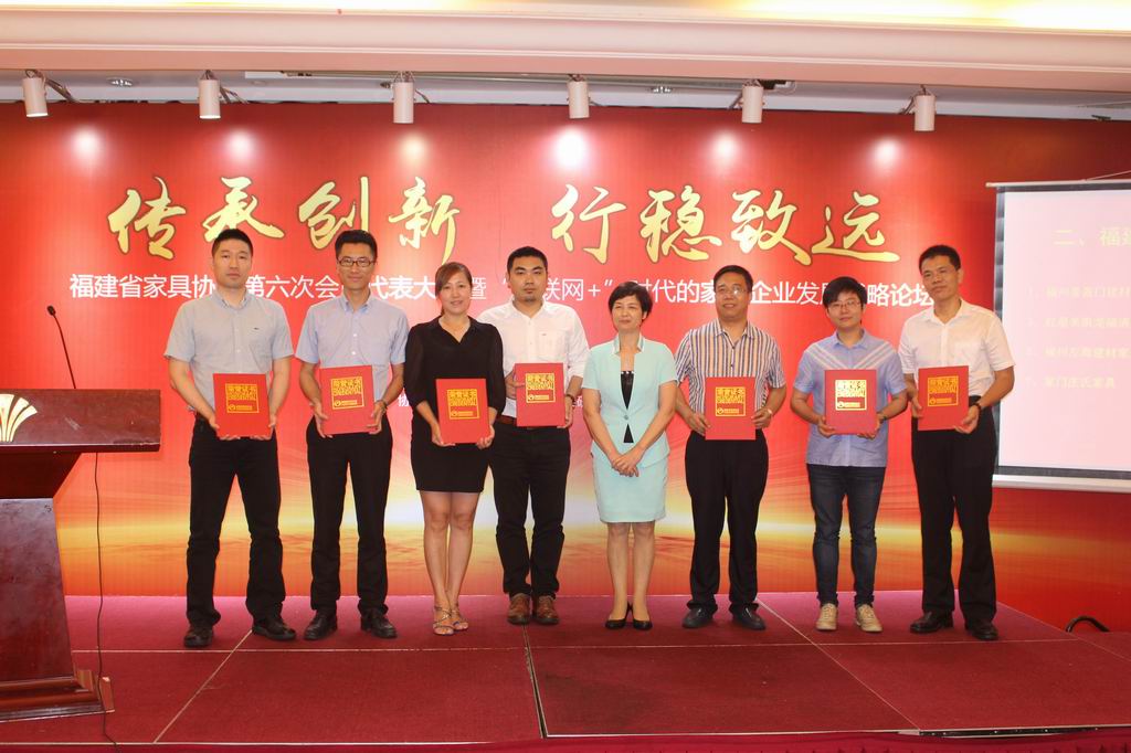 福建省家具协会副理事长黄连福宣读了“福建省家具协会关于表彰全省家具行业先进单位及个人的决定”:沈洁梅、何善祥等18人荣获“福建省家居行业杰出人物”称号;福州喜盈门建材家具广场、上海红星美凯龙品牌管理有限公司、福州居然之家家居建材市场有限公司等8家卖场荣获“福建省家居行业最诚信卖场”称号;诚丰家具(中国)有限公司、龙海市同兴工艺品有限公司等36家企业荣获“福建省家居行业优秀企业”称号。