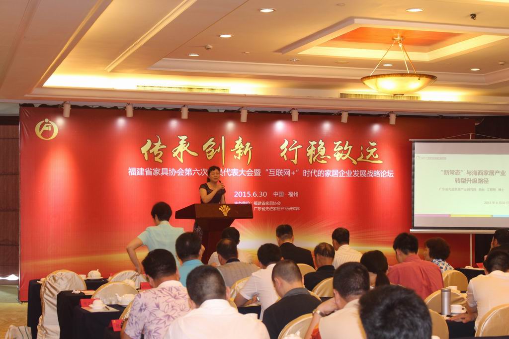 伴随中国经济的发展和改革的深入,我国经济已由高速增长转入中高速增长,我国家具市场也随之进入了新的发展阶段,当前互联网飞速发展,商业模式日新月异,机遇与挑战并存。为共同研究和探讨如何在新常态、新形势下迎接挑战,把握机遇,促进产业转型升级,跨越发展,提高企业经济效益,促进我省家具行业健康、稳定、持续发展;同时,为与时俱进,继往开来,加强桥梁作用,提升服务能力,健全协会建设,充实壮大自身,福建省家具协会于2015年6月30日在历史悠久、美丽繁华的省会福州(世纪金源大饭店)隆重召开第六次会员代表大会暨“互联网+ ”时代的家居企业发展战略论坛。