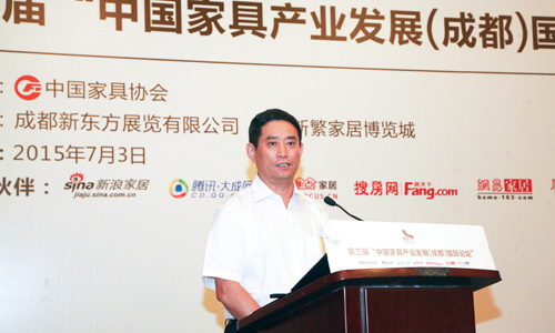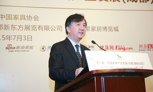 中国家具协会理事长、亚洲家具联合会会长朱长岭为大会致辞,并做《2015年上半年中国家具行业发展概况》报告,公布了2015年4月的行业运行数据,分析了西部家具行业未来发展的各项政策机遇,介绍了上半年家具行业的重点事件和中国家具协会近期的主要工作。朱理事长对西部地区的家具产业发展表示重视和支持,对成都家具行业在展会展览、生产制造等方面表示信心和肯定。