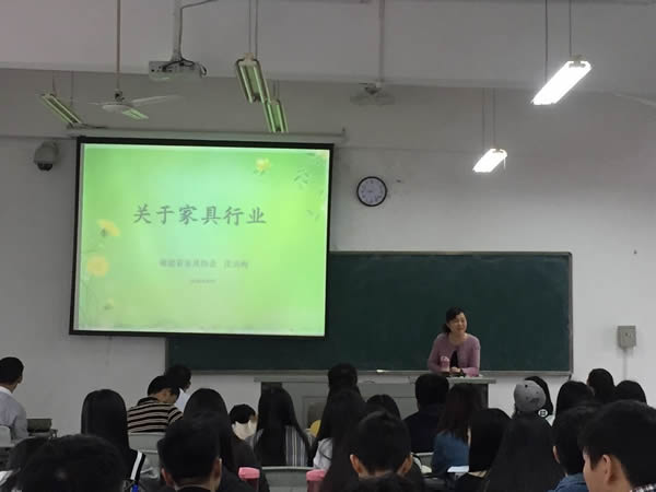 讲座中,沈洁梅介绍了中国家具行业在世界上的地位及概况、福建家具行业在中国的地位及概况、福建知名家具企业等内容,为即将踏上工作岗位的同学们分析了家具行业未来的发展前景。