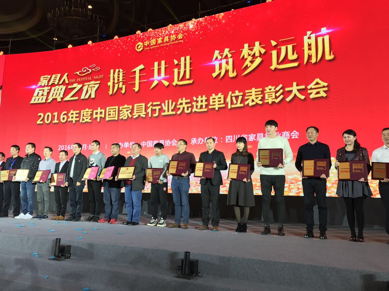 29日晚,全国家具行业大咖悉数出席全国家具行业表彰盛会,整个家具人盛典之夜充满了欢乐祥和、激情向上的气氛。中国家具协会理事长朱长岭在表彰大会致辞,高度评价即将过去的2016年,全国家具行业同仁努力奋斗克服了转型升级过程中的许多困难,取得了卓越的成绩,可喜可贺,他对全国家具人的不断创新与奋斗精神表示感谢。随后,中国家具协会理事长朱长岭、中国家具协会副理事长刘金良、中国家具协会秘书长张冰冰共同上台一起祝酒,祝愿2017年中国家具业更加健康繁荣,家具人身体健康、事业兴旺!