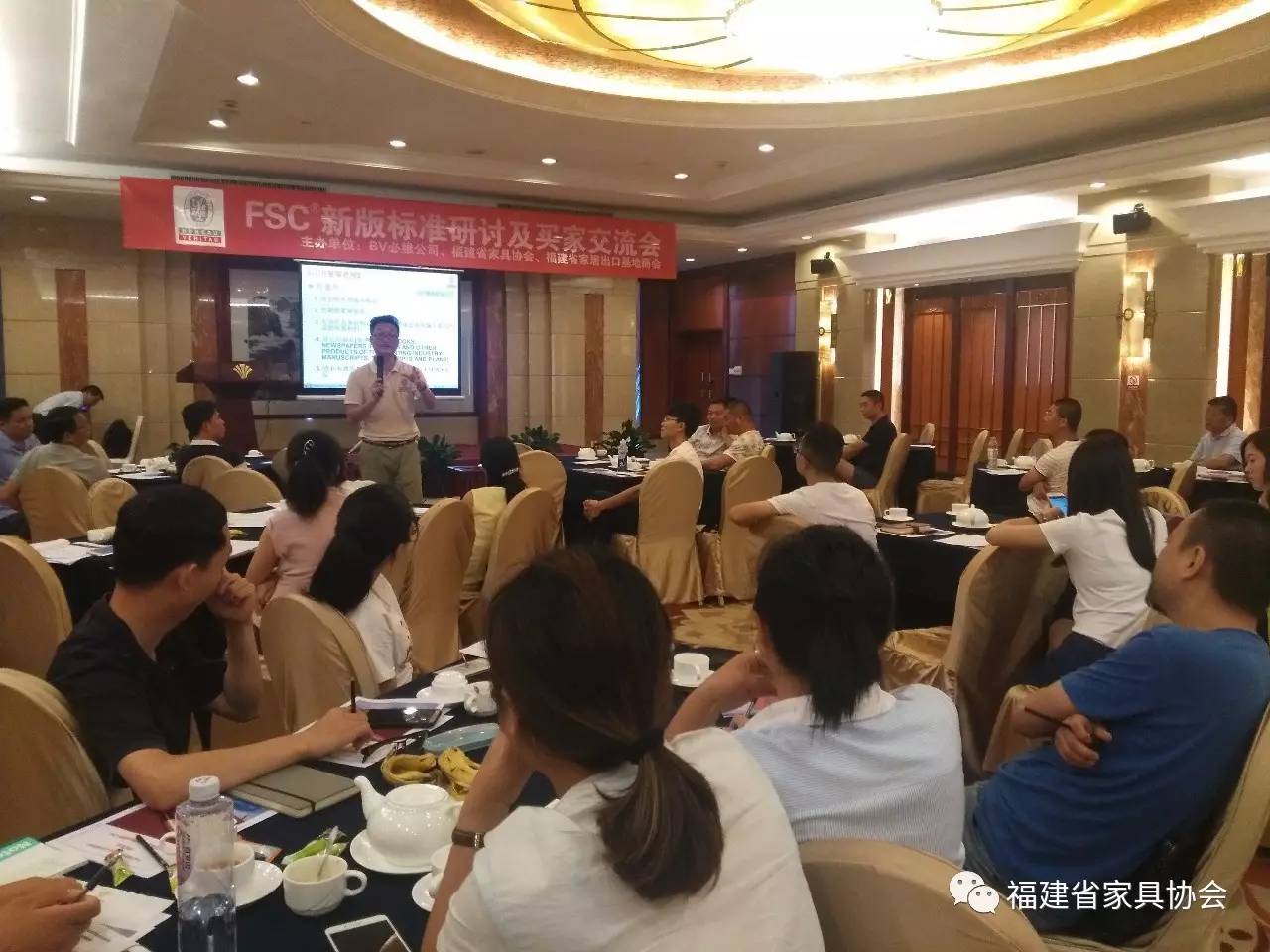 本刊讯 为了简化和梳理产销监管认证,FSC于2017年1月1日发布了新版标准,2017年4月1日正式生效,过渡时间为2017年4月1日至2018年3月31日,通过 FSC 认证的企业需要在过渡时间结束前完成升版工作。为了帮助企业更好的完成 FSC 的升版工作,福建省家具协会、BV必维公司、福建省家具及装饰品出口基地商会联合在福州世纪金源大饭店举办FSC新版标准研讨会及买家交流会。福建省家具协会副理事长兼秘书长沈洁梅,福建省家具及装饰品出口基地商会副秘书长姚建军,BV必维公司相关负责人,我省部分重点家具、家居企业及相关产业企业代表,近70人参加了会议。