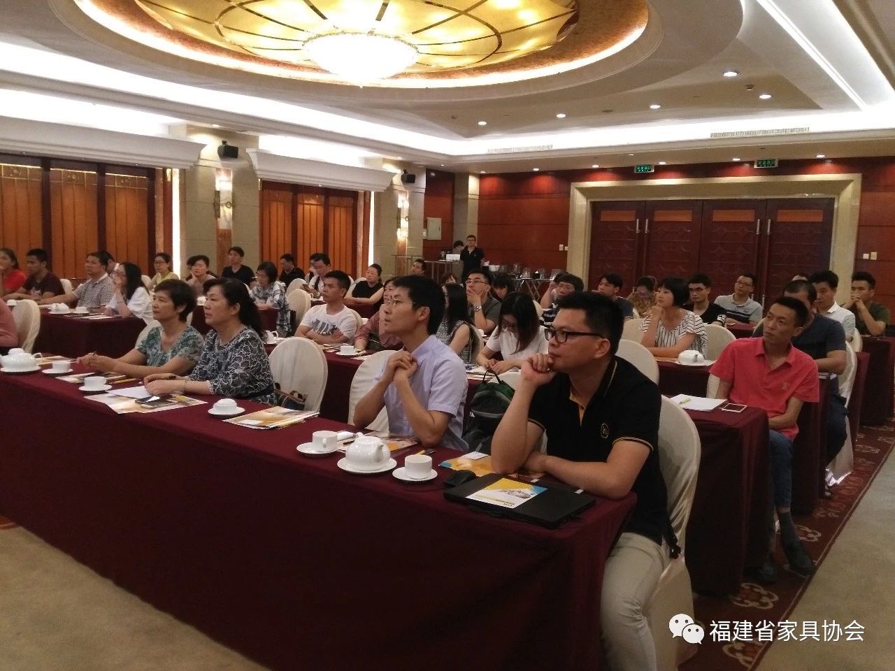 福建省家具协会理事长林萍、副理事长兼秘书长沈洁梅,福建省家具及装饰品出口基地商会会长张光伟,福建省商务厅公平贸易局主任科员陈勋胜,闽侯县工艺品同业公会会长洪敏杰,天祥公司相关负责人,以及我省部分重点家具企业代表,近70人参加了研讨会。会议由沈洁梅秘书长主持。